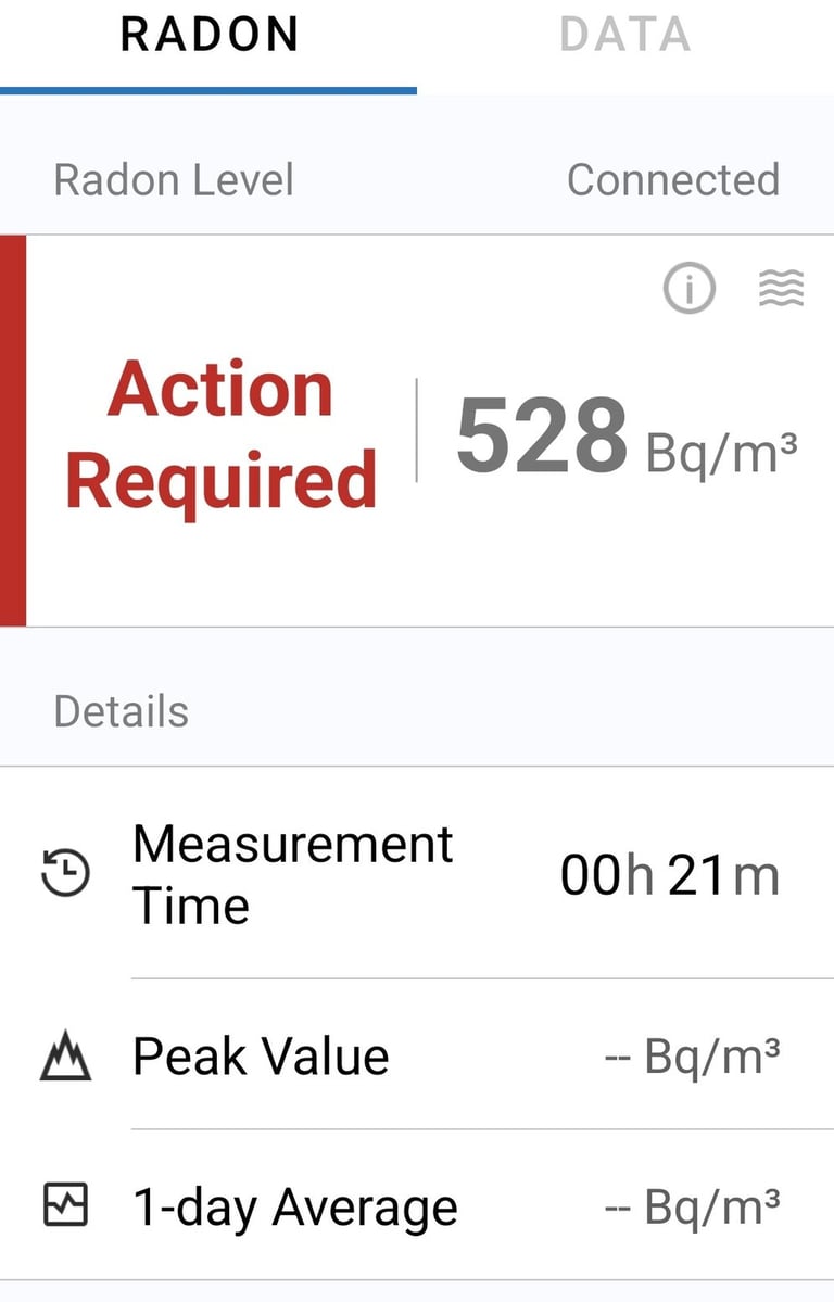 Večina drugih senzorjev potrebuje 24 h za prvi rezultat – RadonEye je bistveno hitrejši.